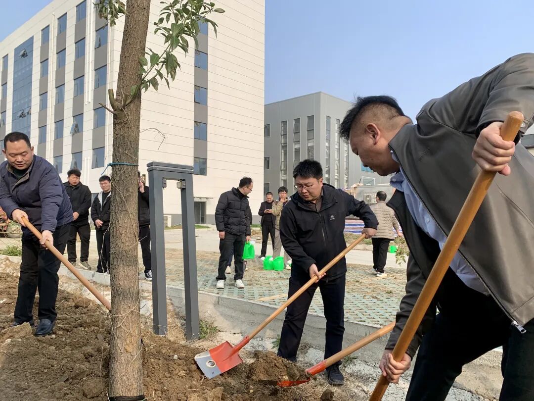 活动现场,春意盎然、一派繁忙。植树环节伊始,公司领导率先垂范,拿起铁锹走向种植区域,带头开启植树行动。扶苗、填土、压实、浇水,每一个步骤都认真细致、有条不紊,以实际行动为全体员工作出表率,也让现场的植树热情愈发高涨。